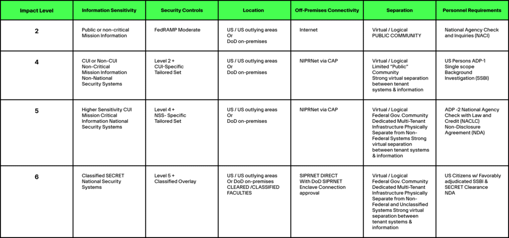 Your first government sponsor will help you hone in on your product’s target audience and their unique accreditation requirements. One of the first questions you’ll need to ask is “what classification of data will my application need to process?” Secret and Top Secret will limit your hosting options, and even within the unclassified category there are separate classifications known as impact levels that each have their own unique requirements.