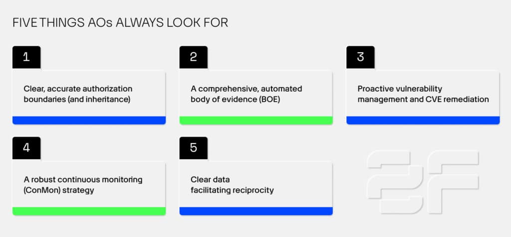 Finally, Authorizing Officials look for pedigree and precedent. If your software has already been assessed and authorized by another federal agency, an AO can leverage that previous work to accelerate their own ATO decision.